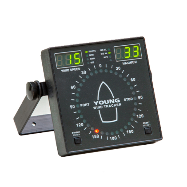 YOUNG 06206型風力跟蹤器是一款緊湊型風速和風向顯示器,具有相對風向和NMEA串行I/O等先進功能,適合船上使用。與大多數YOUNG風傳感器兼容(不包括電壓輸出型號),它將顯示瞬時風速和極大陣風值,可選擇mph, m/s, km/hr,或knots。風向清晰地顯示在LED的圓形圖案上。粗體前面板圖形可快速顯示相對于船舶航向的風向角。亮度控制允許調整,以便在任何光線下都能看到良好效果。即使在黑暗的駕駛室中,發光的前面板標記也能看到。電壓輸出(0-5 VDC)是標準特性。顯示器將直接使用12或24 VDC電源(12-30 VDC,3.5W)工作;包括雙電源(110VAC/230VAC)。可以啟用“風跟蹤器”來顯示平均值。警報繼電器連接可用于風速和風向。右上顯示屏也可以設置為數字顯示相對于船首的相對風向,而不是極大陣風。單個傳感器可以使用多個顯示器。海上風跟蹤器非常緊湊,便于安裝在垂直艙壁或控制臺上。