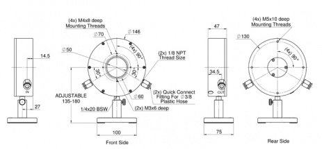 BD5000W-BB-50是一款水冷式激光光束捕集器,具有50mm孔徑,5000W以內。在全功率下可承受3kW/cm2的功率密度,光譜覆蓋范圍為0.19 - 20μm。