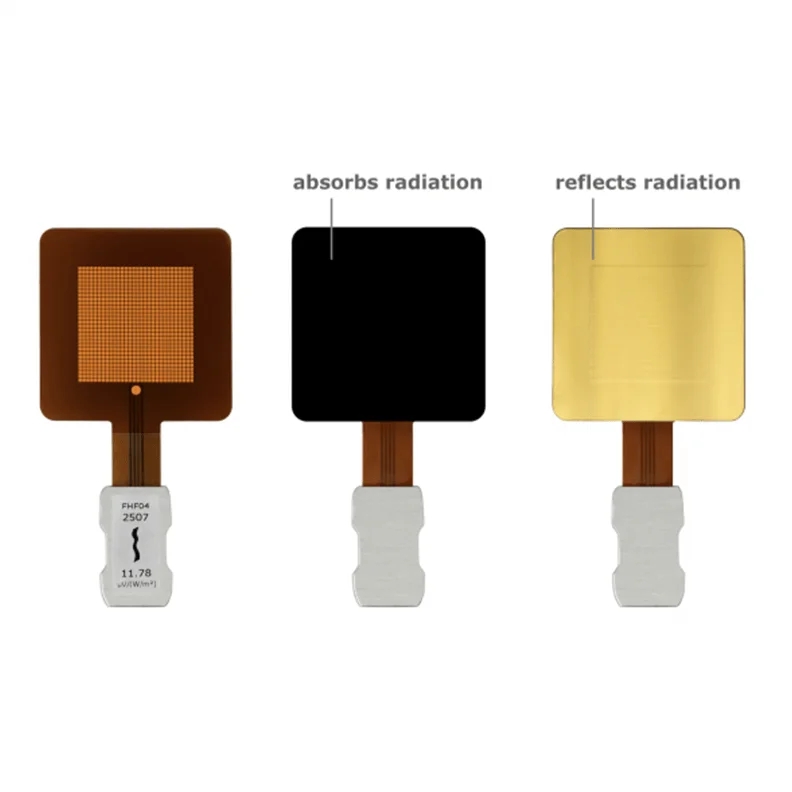 測量熱通量時,用戶可能希望只測量輻射熱通量或只測量對流熱通量?,F在,BLK–GLD 貼紙系列可以實現這一點,該系列設計用于我們市場優質的各種熱通量傳感器。BLK–GLD 貼紙設計為由用戶粘貼,但也可以選擇在工廠預先粘貼。