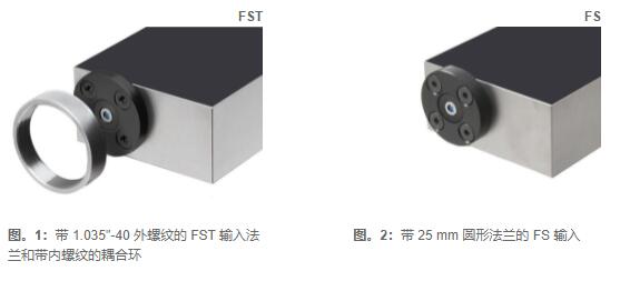 兼容光學平臺(自由空間)和光纖自由空間輸入設計為帶螺紋耦合環的 1.035"-40 螺紋法蘭 (FST) 或無螺紋的 25 mm 圓形法蘭 (FS)。這兩種類型都與來自不同制造商的光學配件廣泛兼容,例如透鏡、管、籠式系統、光學適配器等。