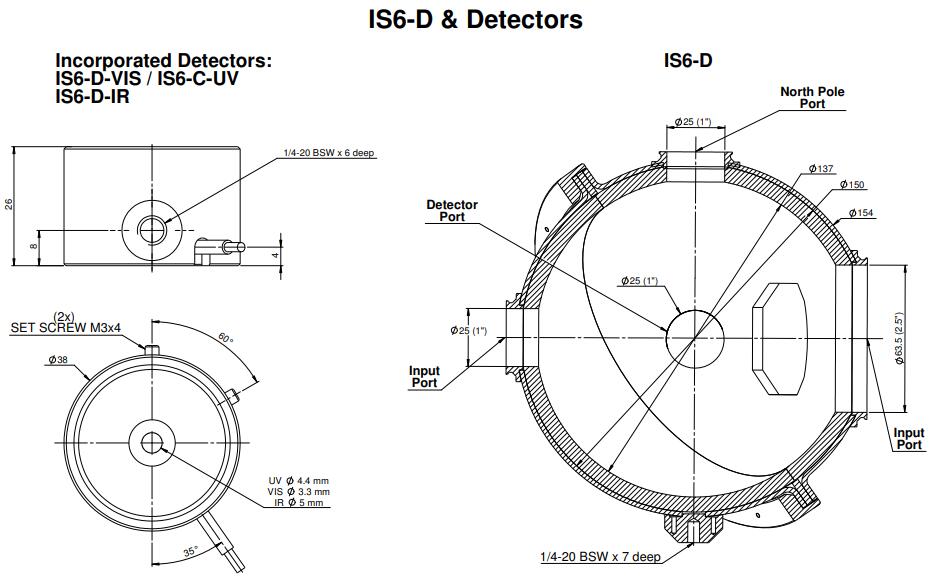 IS6-D-IR 是一個 6 英寸積分球(內部 5.3 英寸),帶有用于發散 (D) 光束的鍺檢測器。IS6-D-IR 配備紅外探測器,校準范圍為 700 至 1800nm,可測量高達 30W 的功率。