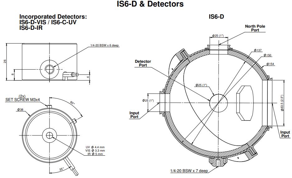 IS6-D-VIS 是一個 6 英寸積分球(內部 5.3 英寸),帶有用于發散 (D) 光束的硅檢測器。IS6-D-VIS 帶有 VIS 檢測器,校準范圍為 400 至 1100nm,可測量高達 30W 的功率。