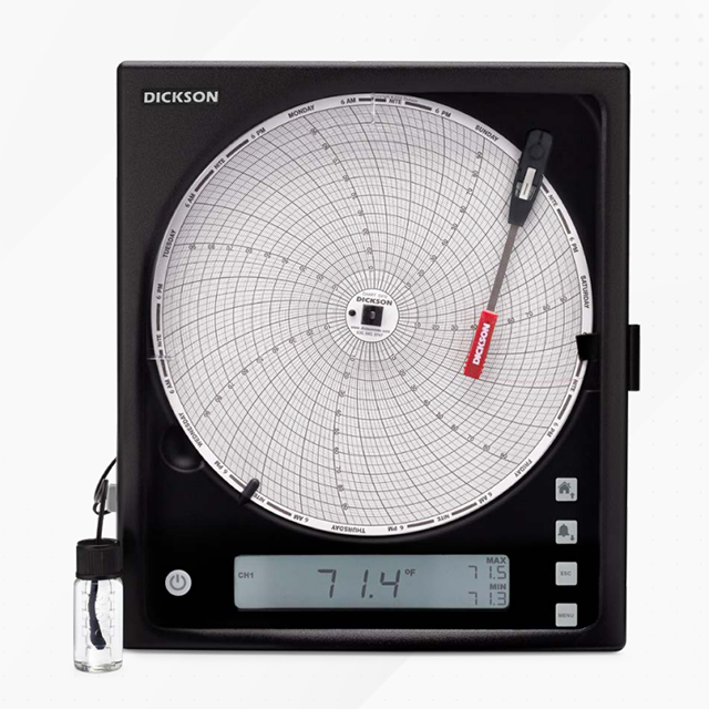 美國DICKSON KT8-20 8英寸(203 毫米)圖表記錄儀提供所有圖表記錄儀中較大的分辨率。現在具有可更換傳感器,校準您的圖表記錄儀比以往任何時候都更容易。所有圖表記錄儀均配有 8 英寸大圖表和用戶可選擇的記錄時間范圍(1 天、1 周)和范圍。