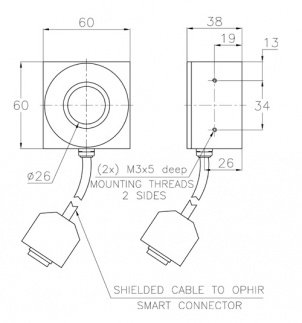 L30C-LP2-26-SH是一款緊湊型熱功率/能量激光測量傳感器,可獨立使用或安裝在主機系統上。它有一個26毫米的孔徑,可以單獨測量300瓦到10瓦,當熱量下沉時可以測量100瓦。它可以測量從30mJ到2000J的能量。該傳感器能夠通過測量暴露在激光下0.5-4s的能量來測量高達4kW的高功率激光。高損傷閾值LP2吸收器覆蓋0.25至2.2μm的光譜范圍。傳感器配有一根標準的1.5米電纜,用于連接儀表或PC接口。