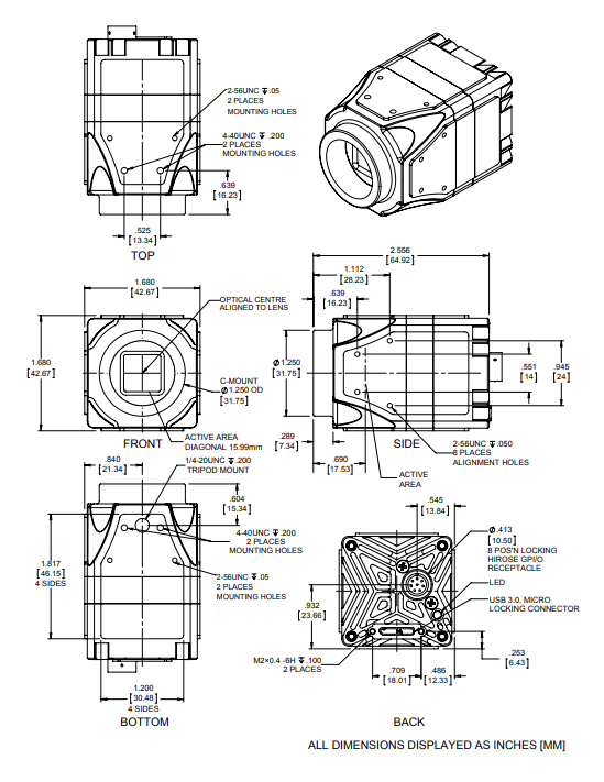 相機(jī)前端到傳感器的距離是多少?這款 C 接口標(biāo)準(zhǔn)相機(jī)的傳感器深度從相機(jī)正面到傳感器為 17.5 毫米。