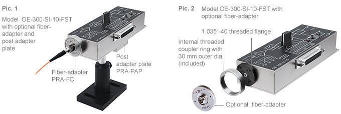 所有 OE-300 型號都可以通過可選的接桿支架適配器類型 PRA-PAP 輕松安裝到標準 M4 和 8-32 UNC 螺紋光學接桿支架上。