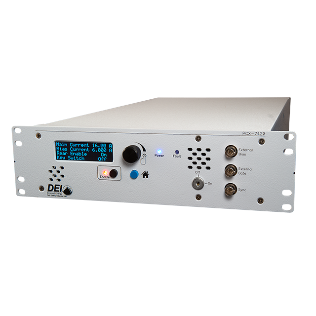 PCX-7420-B 能夠提供 QCW(脈沖)和 CW (DC) 輸出。它可以用作電流為 0.050 A 至 5.8 A 的 CW 驅動器,也可以用作電流為50 mA 至 21.5 A 的脈沖/QCW 驅動器。此外,輸出可以偏置為 3 A 至 5.8 A 的任何 CW 電流,然后以脈沖形式越過該偏置電流,最大值可達 15.7 A。一項新功能允許偏置電流獨立于主電流觸發器進行脈沖和觸發。