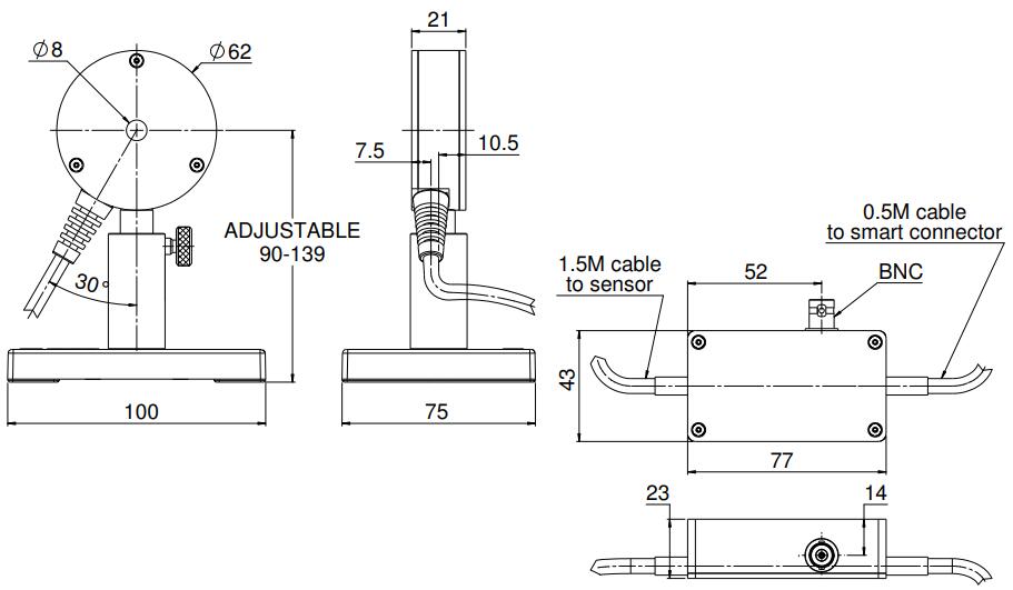 RM9 輻射計是一種用于測量低電平 CW 或準 CW 激光器和光源功率的傳感器。RM9 使用熱釋電傳感器和帶 18Hz 斬波器的鎖定放大器(不包括在內,使用RMC1或其他斬波器)來測量從100nW 到 100mW 的寬范圍輻射。它有一個 8mm 的孔徑,覆蓋從 0.15μm 到 12μm 的光譜范圍。