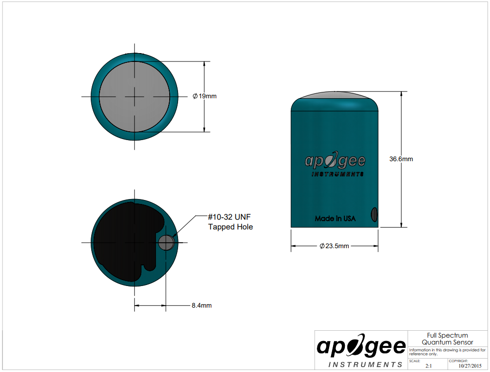 SQ-515是一個放大的全頻譜量子傳感器,輸出0到5 V。該傳感器集成了一個藍色增強硅光電二極管和定制的光學濾波器,具有堅固的自清潔傳感器外殼設計,陽極氧化鋁體與丙烯酸擴散器,高質量的電纜終端在預鍍錫的pigtail引線中,便于連接到數據記錄儀和控制器。典型應用包括室外環境、溫室和生長室中植物冠層上的PPFD測量,以及相同環境中反射或冠層下(傳輸)PPFD測量。量子傳感器也被用于測量水生環境中的PAR/PPFD,包括生長珊瑚的鹽水水族館。傳感器包括IP68防水的不銹鋼電纜連接器,以簡化傳感器拆卸和更換維護和重新校準。