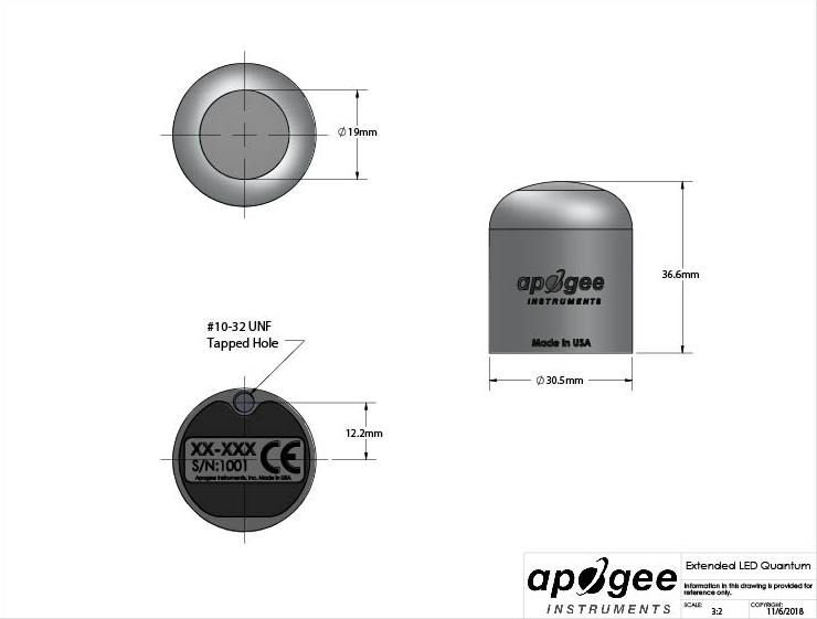 SQ-640量子光污染傳感器是一種自供電傳感器。該傳感器采用堅固的鋁制外殼,可完全潛水,可承受惡劣條件,高質量的電纜終端采用預鍍錫的pigtail引線,方便連接數據記錄儀和控制器。傳感器電纜包括一個IP68防水的不銹鋼電纜連接器,以簡化傳感器的拆卸和更換,從持久安裝進行維護和校準。量子光污染傳感器的典型應用包括在室內溫室或生長室的植物冠層上的傳入PFD測量,以及在相同環境中反射或冠層下(傳輸)PFD測量。由于這種特殊的量子光污染傳感器上的探測器對波長高達1100 nm的輻射敏感,超出了影響植物的波長范圍,因此我們建議只在使用LED燈的室內生長環境中使用SQ-640傳感器。