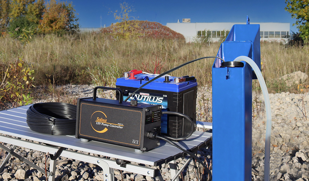 Solinst 12V潛水泵能夠從地表以下36.5米(120英尺)處抽取地下水,在淺層條件下流速高達13.5 L/min(3.6 US gpm)。使用12V泵控制器的單刻度盤調節連續流量非常簡單。12V潛水泵的時尚、短(標稱6英寸)設計意味著它可以很容易地安裝在可能不直的井中,而不會出現故障。