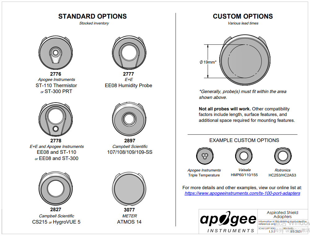 TS-200是Apogee的24伏特風扇抽吸式輻射屏蔽器的僅屏蔽模型。獨特的空氣動力學形狀和堅固耐用的低功率風扇使其成為一個可用于電池或太陽能發電站的風扇吸氣式護罩。該屏蔽提供了出色的傳感器保護,并使用其中一個傳感器端口適配器插頭容納熱敏電阻、PRT和濕度探頭的各種組合。單擊此處查看兼容傳感器的列表。如果您使用不同的傳感器,請直接與我們聯系以討論兼容性。典型的應用包括天氣網絡中的空氣溫度和濕度測量,通常用于天氣預報,以及太陽能站點。風扇抽吸護罩在精確測量地表以上的空氣溫度和濕度梯度以及監測氣候變化方面也很重要。