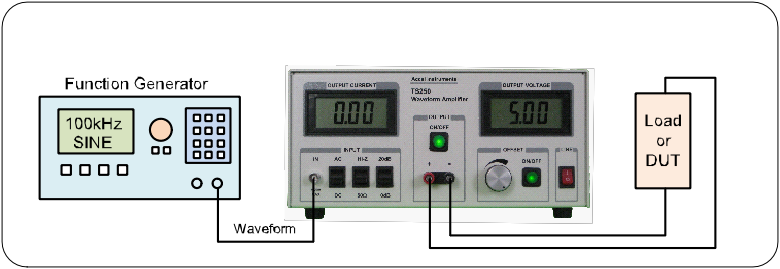 TS250波形放大器是一款獨特的儀器,非常適合放大函數發生器。它放大電流或電壓或功率以驅動重負載。TS250 提供 ±10V 至 +65V 八種電壓范圍可供選擇。TS250 低壓型號的輸出電流高達 5A 。如應用部分所示,通過并聯連接兩個或多個 TS250 波形放大器可以實現更高的電流。