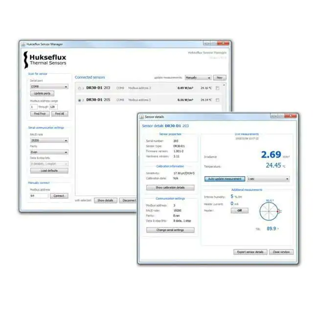 Irradiance in W/m2 Instrument body temperature in °C, Tilt angle in ° Internal humidity in %, Heater current in mA |