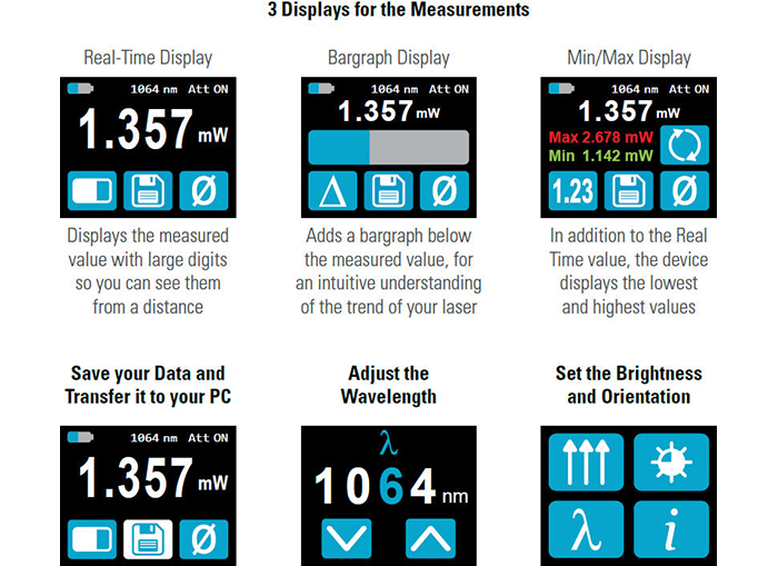 Just slide the OD1 integrated filter to the "on" position and you can measure up to 800 mW of continuous power.