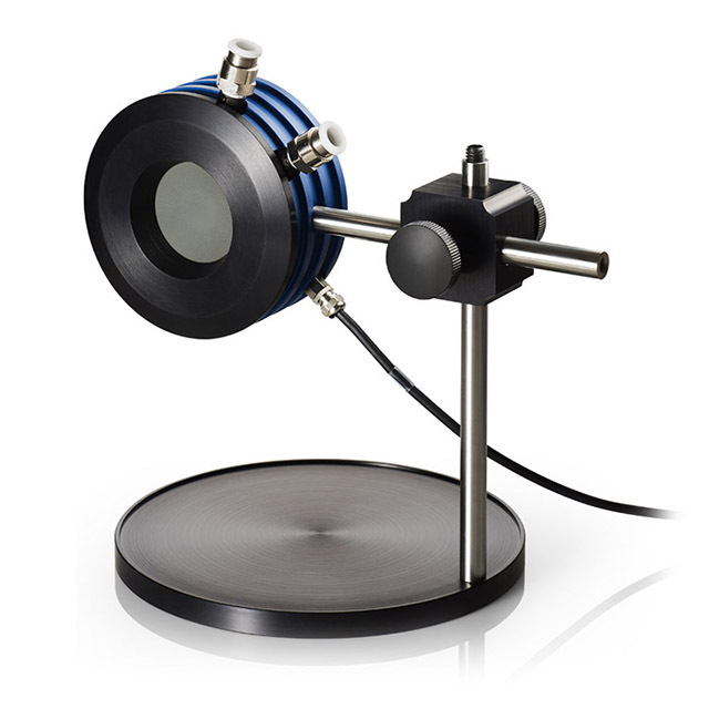 This PowerMax-RS PM3K+ sensor is a water-cooled kW laser power sensor intended for measuring lasers up to 3000W. It has a large 50 mm diameter active area, and the spectrally flat BB+ coating is highly resistant to laser damage.