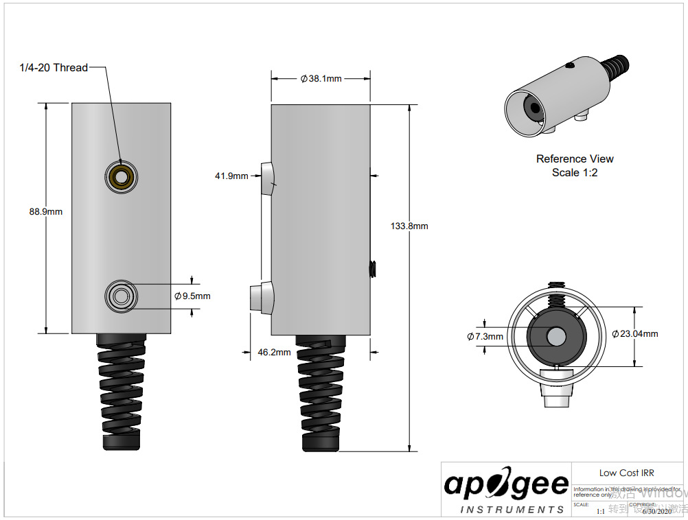 The SIL-111 is an unamplified analog sensor with a voltage output and high-quality cable terminating in pre-tinned pigtail leads for easy connection to dataloggers and controllers. The sensor has a 22° half-angle field of view and a response time of 0.6 seconds. Typical applications include plant canopy temperature measurement for use in plant water status estimation, road surface temperature measurement of determination of icing conditions, and terrestrial surface (soil, vegetation, water, snow) temperature measurement in energy balance studies.