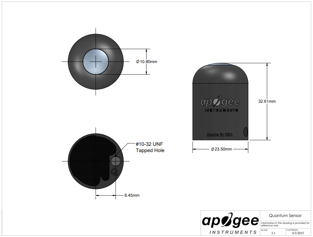 | Calibration Factor | 250 μmol mˉ2 sˉ1 per mA |