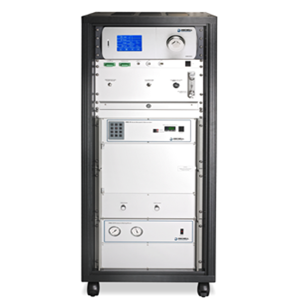 The complete system is mounted in a 19-inch rack unit. If using a high-purity air or nitrogen supply, this may be selected as a feed to the system instead of the integral compressor/dryer system.